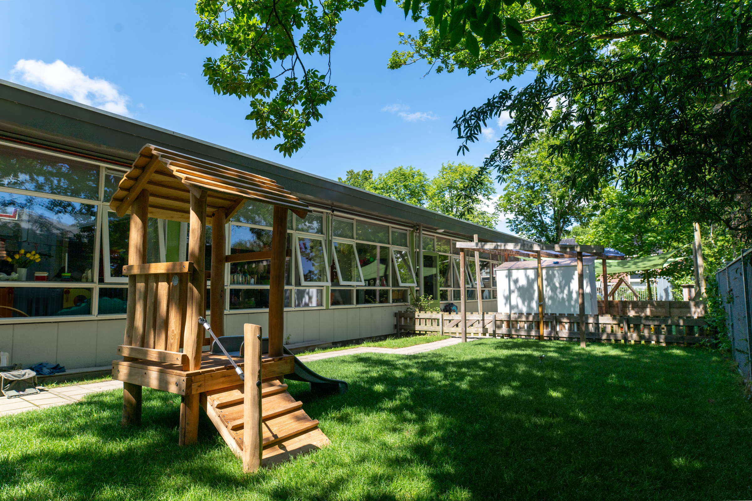 De kinderen hebben een eigen speelzaal, verschillende ruime binnentuinen, speelplaatsen en onze eigen moestuintjes.